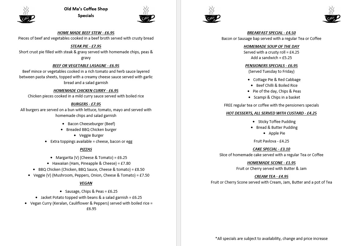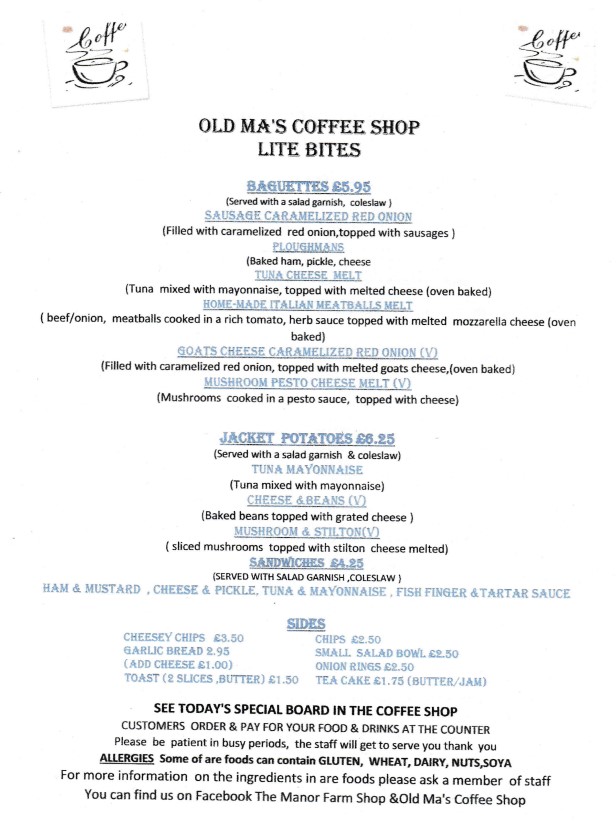 Manor Farm Shop, Café and campsite Menu (Update 2025)